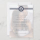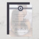 Cet élégant faire-part de mariage nautique présente un style classique bleu marine et blanc avec un look classique et votre photo dans l'arrière - plan s'estompe derrière le texte. Design présente une illustration de voilier bleu marine avec une triple ligne sur le dessus. Un bloc élégant et des lettres de script en bleu marine assorti complètent le look. Parfait pour les mariages de yacht club, de bateau, de plage ou d'été.