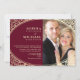 Faites une première impression glamour avec notre luxueux faire-part de mariage classique d'or et de bordeaux, avec un cadre élégant en fibre et une photo personnalisée. Les riches tons bordeaux et les touches dorées chatoyantes créent une esthétique royale et romantique, parfaite pour l'automne, l'hiver ou les mariages formels. Ce design sophistiqué met en valeur votre histoire d'amour, alliant élégance intemporelle et charme personnalisé. Parfait pour les couples à la recherche d'une faire-part de mariage luxueuse et élégante, ce design offre une façon étonnante d'invitation vos invités et donne le ton pour votre célébration inoubliable. Personnalisez-le avec votre photo, vos noms et vos détails mariages pour créer un souvenir qui reflète votre amour.