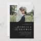 Un faire-part de mariage photo classique noir et blanc avec photo horizontale et élégant script de calligraphie et texte propre éditable. Cliquez sur le bouton Modifier pour customiser cette conception.