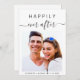 Faire-part de mariage moderne avec votre photo, "Happily Ever After" dans un mélange de typographie simple et d'un script chic avec des swashes et vos prénoms et votre date de mariage réunis par un coeur. Au contraire, personnalisez votre invitation en typographie élégante.