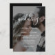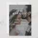 Élégante invitation de mariage photo en noir et blanc avec une police de script moderne. Personnalisez facilement ces invitations noires et blanches de mariage photo avec vos images et détails mariages. Éléments correspondants disponibles.