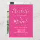 Avec des noms de style signature, cette élégante invitation de mariage peut être personnalisée avec vos informations en lettrage blanc chic sur un arrière - plan rose chaud avec votre photo choisie au verso. Conçu par Thisisnotme©