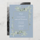 Doté de délicats feuilles d'aquarelle et d'un élégant arrière - plan bleu poussiéreux. Cet élégant faire-part de mariage botanique peut être personnalisé avec votre photo et détails spéciaux de jour de mariage dans la typographie moderne. Conçu par Thisisnotme©