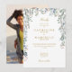 De magnifiques fleurs sauvages fleuris encadrent vos détails spéciaux de célébration de mariage, dans une élégante typographie dorée, sur cette élégante invitation de mariage avec votre photo mariage spéciale au verso. Conçu par Thisisnotme© Conçu par Thisisnotme©