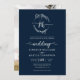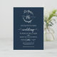 Invitation Mariage photo Floral Wreath Navy Blue Monogram
