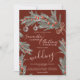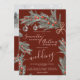 C'est le moment de célébrer votre thème mariage hiver au pays des merveilles avec cette branche de pin vert peinte à la main, le mistletoe rouge, les ornements de Noël avec un script cool moderne typographie de police sur rouge foncé. Ajoutez ou retirez votre photo au dos avec les noms du couple.