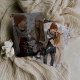 Des invitations de mariage modernes minimes avec une photo du couple heureux sur le devant avec une couverture noire, un modèle d'invitation de mariage facile à personnaliser, et une autre photo sur le dos.