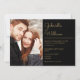 Faire-part de mariage de script moderne avec vos 2 photos spéciales et détails de célébration mis en typographie or sur un arrière - plan noir. Conçu par Thisisnotme©