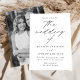 Faire-part de mariage minimaliste et moderne avec vos détails mariages en lettres noires simples avec "le mariage de" dans un élégant script de calligraphie. L'arrière - plan blanc présente de subtiles taches noires pour un design faire-part de mariage unique. L'invitation s'inverse pour afficher votre photo de fiançailles vertical. Conçu pour coordonner avec notre collection de mariages Modern Elegance.