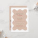 Cette belle faire-part de mariage est encadrée par une délicate bordure de pétoncle à vagues. Il dispose d'une palette paisible aux tons apaisants de terre cuite, complétée par des verts doux et des tons terreux. Les fontes ludiques mais sophistiquées dansent à travers la page, mélangeant le fantaisie avec l'élégance, et des mots sélectionnés soulignés dans le vert sauge profond ajoutent une délicieuse pop de couleur. Plus qu'une simple invitation, c'est un prélude à une fête pleine de charme et de joie, parfaitement adapté aux couples à la recherche d'un mélange de plaisir et de sophistication dans un design qui parle doucement de la nature et de l'amour.