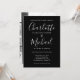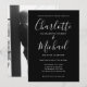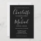 Avec des noms de style signature, cette élégante invitation de mariage noir et blanc peut être personnalisée avec vos informations en lettrage blanc chic avec votre photo monochrome choisie au verso. Conçue par Thisisnotme©