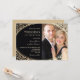 Célébrez votre jour spécial avec style grâce à cette invitation de mariage noire de luxe, dotée d'un cadre floral doré romantique qui exsude élégance et sophistication. Une photo grandeur nature du couple ajoute une touche personnelle et sincère, tandis que le fond noir chic et les accents dorés scintillants créent une atmosphère dramatique et luxueuse. Parfaite pour les mariages glamour, formels ou en soirée, cette invitation allie avec beauté la romance intemporelle au luxe moderne. Entièrement personnalisable avec vos détails de mariage et votre photo.