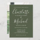 Avec des noms de style signature, cette élégante invitation de mariage peut être personnalisée avec vos informations en lettres blanches chic sur un arrière - plan vert olive avec votre photo choisie au verso. Vous pouvez customiser la couleur arrière - plan pour correspondre à votre thème mariage. Conçu par Thisisnotme©