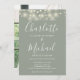 Avec de jolies lampes à cordes et des noms de style signature, cette élégante invitation de mariage peut être personnalisée avec vos détails de jour de mariage en lettres blanches chic sur un arrière - plan vert sage avec votre photo choisie au verso. Conçu par Thisisnotme©