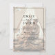 Faites de votre mariage un inoubliable avec notre invitation moderne ! Il combine un script élégant avec des polices serif et sans-serif élégantes en noir. L'avant présente les détails de votre mariage sur une photo personnalisée avec une couverture blanche, tandis que l'arrière offre de l'espace pour une autre photo de votre choix, rendant chaque invitation unique.