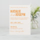 Ce faire-part de mariage est parfait pour votre mariage si vous recherchez un design unique et facile à éditer.Une élégante simple et minimaliste invitation modèle mariage orange crème. Celle-ci est ornée d'un arrière - plan crème clair. Et les prénoms de mariée et de marié orange et élégant. Et photo changeable avec des informations modifiables avec des noms également dans le dos. Abordable et il est aussi numérique électronique e-invitation si vous voulez l'envoyer par texte ou e-mail. Toutes les informations sont personnalisables en cliquant sur le bouton personnaliser. Alors attrapez-le et faites-le vous pour que vous fassiez de vous des invitations engagés et enthousiasmés.