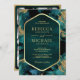 Invitation Mariage photo turquoise Gold Abstrait Fluid Ink