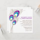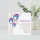 Une invitation élégante et classique présente une belle illustration vectorielle de plumes paon sur un arrière - plan violet profond. Parfait pour les mariages, les douches nuptiales, les fêtes d'anniversaire, les fêtes de sweet sixteen et plus encore !