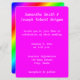 Créez votre propre carré personnalisé diagonal arc-en-ciel ombre faire-part de mariage. Faites pivoter l'image pour obtenir un effet différent. L'image est une tuile transparente. L'échantillon présente un fuchsia ou arrière - plan magenta assez brillant un texte blanc mariage contemporain design pour la mariée et le marié. Vous pouvez customiser la face, le style, la taille, la couleur et le placement de la police. Vous pouvez modifier la couleur de l'arrière - plan rose uni de coordination et customiser la couleur et la couleur de police arrière - plans pour qu'elles correspondent à votre palette de mariages. Couleurs coordonnées : rouge - FF0000, jaune - FFFF00, vert citron - 00FF00, aqua cyan - 00FFFF, bleu - 0000FF, fuchsia magenta - FF00FF, noir - 000000 et blanc - FFFFF. Modifiez la conception de texte personnalisée. Il y a beaucoup de place pour plus d'informations sur l'événement ou le lieu. L'exemple de police blanche est un cursif assez contemporain, mais vous pouvez essayer un style de police d'invitation élégant ou classique à partir des choix disponibles. Créez votre propre invitation unique et contemporaine pour votre mariage.