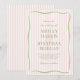 Moderne, rétro et élégant, ce carton d'invitation de mariage rayé donne le ton parfait pour votre grand jour. Avec des rayures verticales pastel rose et vert sauge et un mélange raffiné de typographie sérif classique et rétro fantaisiste, ce design allie élégance et une touche de fun.
