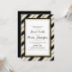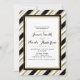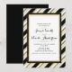 Cartons d'invitation de mariage rayures chic horizontales noir blanc et or.