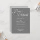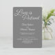 Invitation de réception de mariage élégante et tendance de couleur grise. Cette conception présente une police moderne pour les mots "L'amour est patient" en typographie. Personnalisez cette annonce de mariage qui fait double emploi avec l'invitation à la réception de mariage avec les noms des mariés et tous les détails de la fête sur l'échange de vœux et la fête de mariage. Cette conception de mise en page chic et élégante est facile à personnaliser.