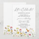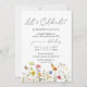 Célébrons votre évasion ! Des fleurs des champs colorées et des papillons créent un design rustique et botanique pour vos invitations de mariage. Des fleurs jaunes, orange, rose et bleues dansent au bas. Les polices serif et cursive ajoutent à ce design magnifiquement classique.