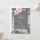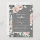 Cette invitation de réception de mariage rose grise classique géométrique est parfaite pour une fête rustique après une fugue amoureuse. Le design présente d'élégantes roses poussiéreuses roses aquarelles et du feuillage vert, soigneusement assemblés en de beaux bouquets sur un fond gris. Les cartes RSVP sont vendues séparément, ou vous pouvez ajouter les détails RSVP au verso ou au bas de la carte.
