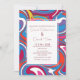Un style rétro ondulé tournoie l'arrière - plan coloré. Couleurs rétro bleu vif et jaune rose. Design artistique unique pour la faire-part de mariage. Facilement modifiable pour votre texte personnel.