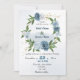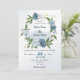 Belles fleurs bleues et blanches avec quelques feuilles verts disposés sur un cercle pour former une magnifique faire-part de mariage de couronne Les détails de la parties scintillant sont simulés