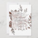 Elégante invitation de mariage avec des fleurs roses rousses en aquarelle. Roses peints avec une fine ligne. Les détails de votre mariage sont superposés sur un carré blanc transparent.