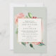 Belles invitations de mariage pour le couple moderne avec un romantique bouquet floral aquarelle sur papier vert design. La bordure carré en feuille d'or Faux au centre de la carte tient vos détails mariages dans une police de bloc moderne dans une encre couleur vert foncé coordonnée. L'envers de l'invitation est une conception coordonnée de papier vert.
