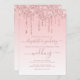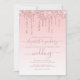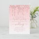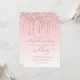 Un design chic et moderne avec un arrière - plan rose sombre avec une bordure supérieure de parties scintillant rose gouttes. Le mot "mariage" et les prénoms du couple apparaissent dans un script de calligraphie en minuscules avec des échelles décoratives au début et à la fin, le texte restant étant en caractères sans serif. La bordure arrière - plan et parties scintillant à l'ombre rose sont répétées à l'envers. (Pour conserver les swashes, ne remplacez que les lettres, laissant les symboles en place.)