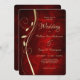 Cette belle faire-part de mariage dans les tons or et rouge donnera un sens de l'élégance à votre mariage ! L'avant gauche est ornée d'un tourbillon doré gracieux orné de quelques feuilles. Votre texte mariage est en or correspondant à droite de l'image. Tout est placé sur un arrière - plan de dégradé rouge profond qui semble presque brillant. L'arrière de l'invitation a le même arrière - plan de dégradé rouge. Elégant pour toute saison ! Il y a des cartes RSVP assorties dans notre magasin.