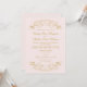 Une invitation de mariage portrait romantique avec des fioritures de rouleau ornemental or sur un fond rose pâle doux. Le filigrane métallique chaud contre le rose délicat crée un look féminin et élégant avec une calligraphie classique et des détails de date structurés. Tout le texte est entièrement personnalisable.