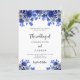 Un arrière - plan blanc, décoré de fleurs bleues et blanches. Personnalisez et ajoutez vos noms et détails. Retour : arrière - plan bleu.
