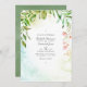 Invitation de mariage tendance de jardin de verdure avec cadre géométrique doré et lavis de couleur vert sauge au verso conçu pour être personnalisé rapidement et facilement selon les spécificités de votre événement. Idéal pour n'importe quel thème ou mariage de jardin. Le code QR au verso dirige vers votre site de mariage où les gens peuvent en savoir plus et répondre.