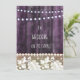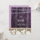 Modèle d'invitation de mariage rustique avec dentelle vintage et un mur en bois de ferme ancien dans des tons de violet doux. Les guirlandes lumineuses ajoutent un charme cosy, ce qui le rend parfait pour les mariages, les enterrements de vie de jeune fille, les fiançailles, les faire-part et les anniversaires. Comprend une conception recto et verso par Alma Wad. Entièrement personnalisable pour s'adapter à votre événement.