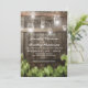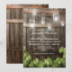 CARTES D'INVITATION DE MARIAGE À LUMIÈRES DE POT MASON DE TONNEAU | Présentant une grange de campagne, un fond de tonneau en chêne foncé, des lumières de ficelle de pot mason scintillantes, l'année où vous vous êtes mis ensemble, des feuilles de vigne avec une formulation de mariage moderne. Trouvez d'autres invitations de mariage en bois sur http://www.zazzle.com/special_stationery*
