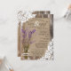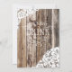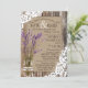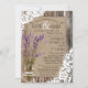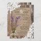 Design de carte occidental de faire-part de mariage de pays rustique avec le bouquet de lavande dans le pot de maçon enveloppé avec la toile de jute, la dentelle, et la dentelle de ficelle et blanche au-dessus de l'arrière - plan de toile-regard et des planches en bois âgées.