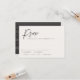 Carte R.S.V.P mariage de script contemporain simple noir et blanc. Un design moderne et abstrait. Partie d'une suite.