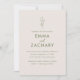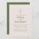 Un faire-part de mariage tout-en-un minimaliste et moderne vert olive et gris, conçu avec des lettres simples et de script, et un élément floral. Customisez avec vos informations de faire-part de mariage sur l'avant, et les informations de logement et de réception mariage sur l'arrière.
