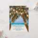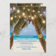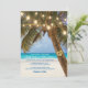 Invitations de mariage de destination avec un cadre de plage paradisiaque tropical avec un palmier luxuriant, vos initiales gravées dans un coeur sculpté et des lumières scintillantes.