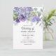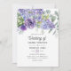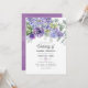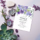 Faire-part de mariage tendance avec des feuilles d'eucalyptus et de succulents plantes mélangés avec des fleurs aux accents de lilas pastel, violet et violet.