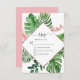 Cartes de réponse de mariage de printemps ou d'été avec feuilles de palmier vert tropical et fleurs rose blush aquarelle avec faux or rose géométrique - comprend une belle et élégante typographie script avec des fleurs botaniques tropicales modernes et de la verdure pour la célébration spéciale du jour du mariage.
