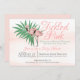 De flamants roses élégants, des oiseaux tropicaux et des feuilles de palmier dessinés à la main à l'aquarelle créent cette jolie invitation à une baby shower rose.