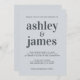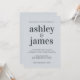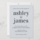 Faire-part de mariage à typographie bleu doux et noir décalé avec une typographie sérif raffinée noir décalé sur un fond bleu mat. Ce design minimaliste offre un look moderne et épuré avec une sensation intemporelle, ce qui le rend idéal pour les mariages classiques, contemporains et élégants. La teinte bleue douce ajoute une couleur subtile tout en maintenant une palette neutre et sophistiquée qui met en valeur les noms et les détails de manière magnifique. Personnalisez facilement avec vos détails.