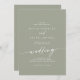 Ce faire-part de mariage vert sauge chic boho est parfait pour un mariage minimaliste. La tonalité neutre en terre verte design bohème moderne se caractérise par une calligraphie rustique simple au style unique mais classique.