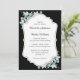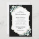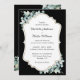 Elégante carte de mariage de verdure noire avec des feuilles d'eucalyptus sur un arrière - plan noir. Éléments correspondants disponibles.