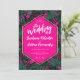 Cette faire-part de mariage tropicale est décorée dans des tons roses chauds et verts. Une police de script mignonne est utilisée pour le titre et les noms du couple, et dans sans-serif est les détails de l'événement, y compris l'emplacement, la date, l'heure et RSVP. L'arrière - plan dispose d'un hexagone avec une bordure en feuille d'or imitation, et de feuilles de palmiers verts pour un style estival tropical. ・ ・ ・ Pour plus de suites mariages, visitez ma boutique Zazzle.com/EventsByJessicaAmber ・ ・ Pour les commandes sur mesure, envoyez-moi un message sur Zazzle